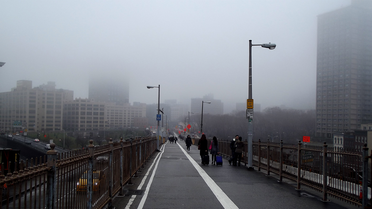 From here we cross the great bridge (Brooklyn Bridge),